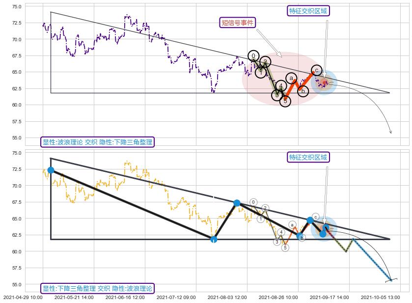 ➢ 波浪理论属【短级别信号事件】下降三角整理属【长级别信号事件】长短周期组合信号事件, 短长事件长度比21.69%