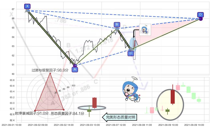 ➢ 🕰 价格走势在2021-09-08 14:00:00至2021-09-09 09:00:00期间形成上涨螺旋桨形态,残存影响值:7.25