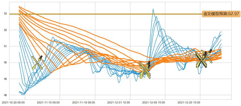 ➢ 55小时均线于(12-21 09:00: 50.18)形成【金叉】基于【金叉历史模型】预测金叉后最高波峰价格: 53.35, 金叉后最高价格51.94,尚未达到预测最高波峰价格, 预期继续上涨