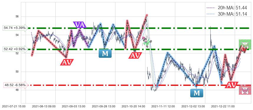 ♘ 阻力价格位52.42,可信任强度94.08%,距离最后交易2021-12-27 15:00形成的收盘价格51.94相差 +0.92%