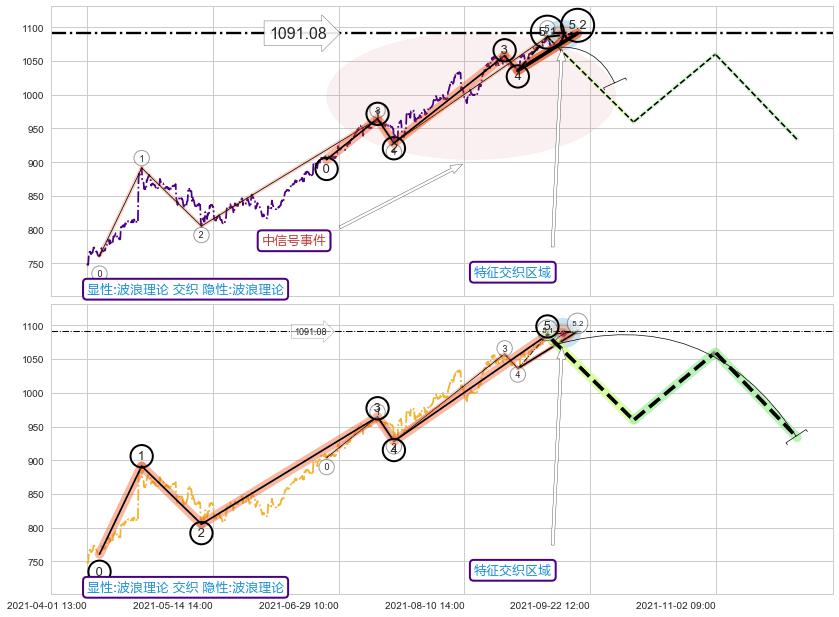 ➢ 5.1: 预测当前第5浪位置(09-08:13, 1085.76),仍然有上升空间