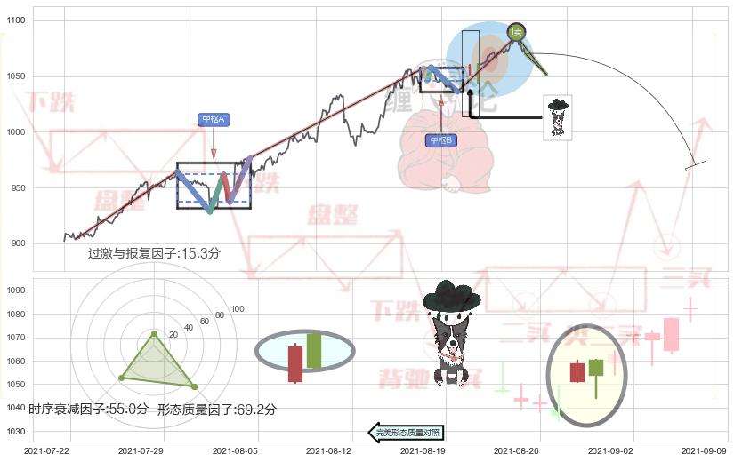 ➢ 🕰 价格走势在2021-09-07 00:00:00至2021-09-09 00:00:00期间形成黄昏之星(夜星),残存影响值:-3.57