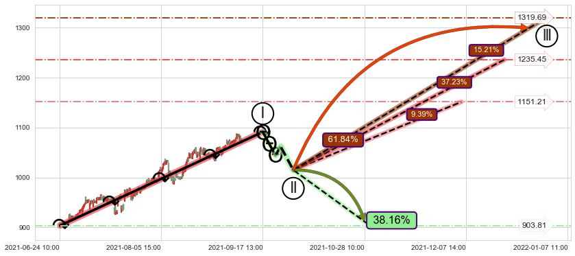 ♘ 支撑价格位962.01,可信任强度98.17%,距离最后交易2021-09-09 14:00形成的收盘价格1070.01相差 -10.09%