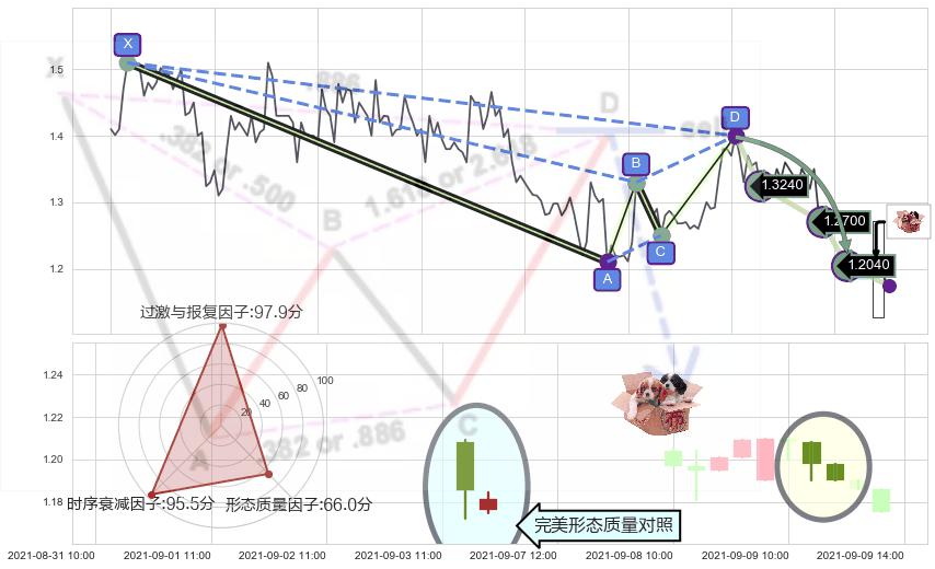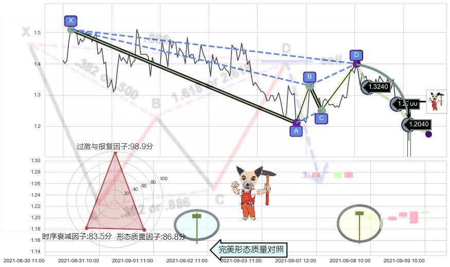 ➢ 已完成【蝙蝠】形态起点X: 07-21:09, 终点D: 08-30:13, 共148交易小时
