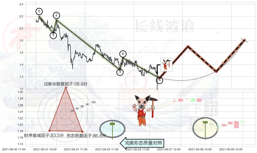 ➢ 🕰 价格走势在2021-09-02 11:00:00至2021-09-02 13:00:00期间形成底部尽头线(上山虎),残存影响值:2.30
