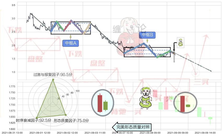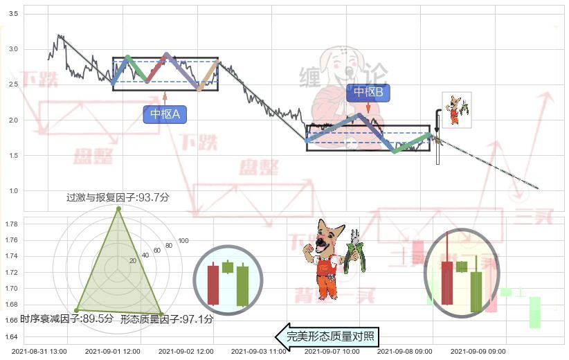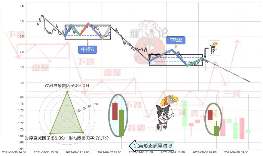 ➣ 下跌螺旋桨 + 缠论中枢点破位中枢B支撑下拉信号叠加后【信号初始稳固度】极低,【看空】信号叠加【可信度影响极小】