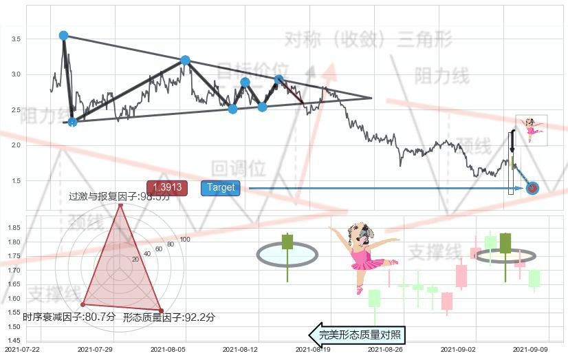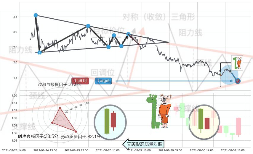 ➢ 中流砥柱形态 🔜 下降对称三角整理临近target支撑拐点上涨 综合量化分数:53.26 【中性】