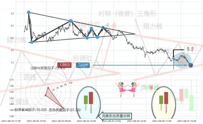 ➢ 【卖1】: 激进型 卖点→(06-21:09: 2.585 )形成突破下降【对称】三角形整理【整理】形态