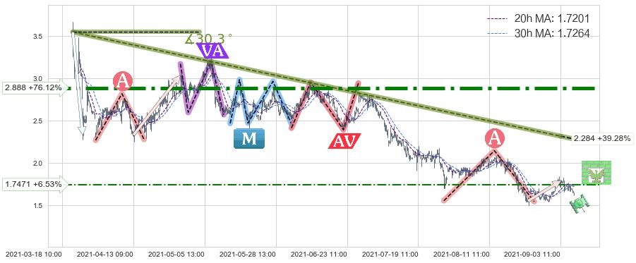 ♘ 阻力价格位1.7471,可信任强度42.30%,距离最后交易2021-09-09 14:00形成的收盘价格1.6400相差 +6.53%