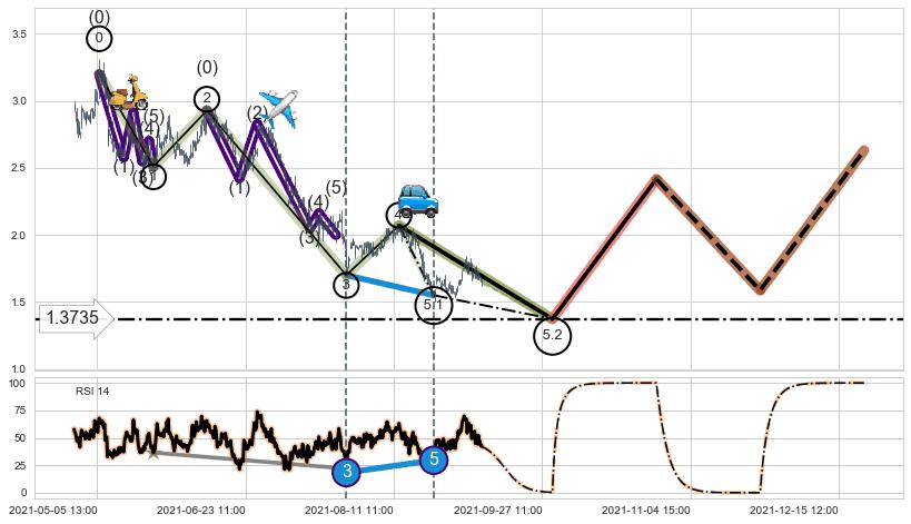 ➣ 波浪理论:猜想即将止跌 → 上涨 →【拐点】浪5临近 → 大趋势均值回复