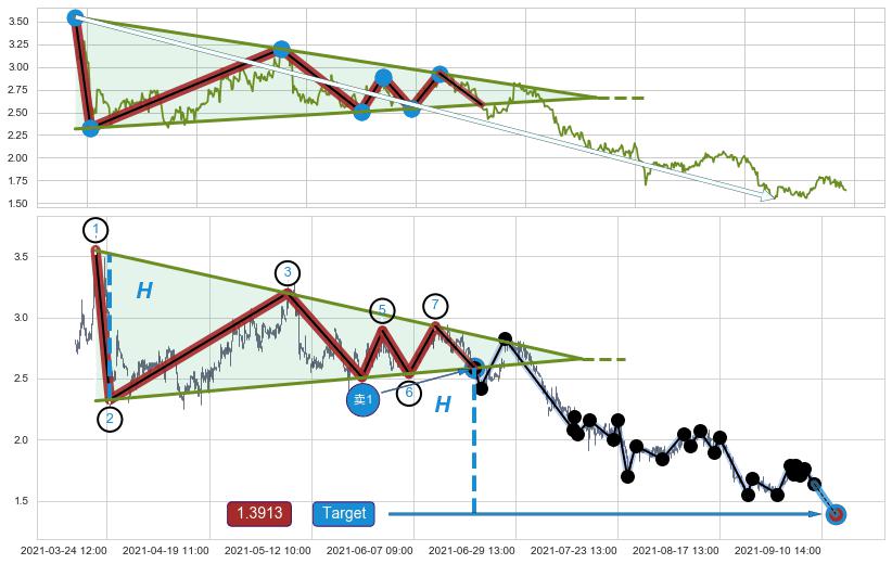 ➢ 下降对称三角整理:猜想下跌target达成后 → 上涨 → 机会信号 → 大趋势均值回复