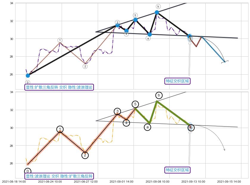 ➢ 扩散三角反转与波浪理论信号事件周期长度级别相同,同周期信号事件