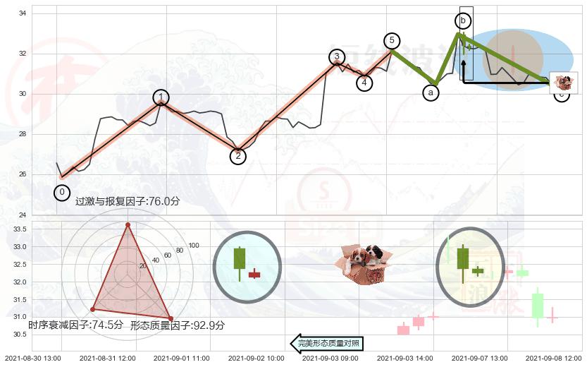 从2021-09-02 09:00至2021-09-09 15:00,共包含31个小时,阶段股价下跌-5.46%,阶段股价变动位移路程比: 1 : 5