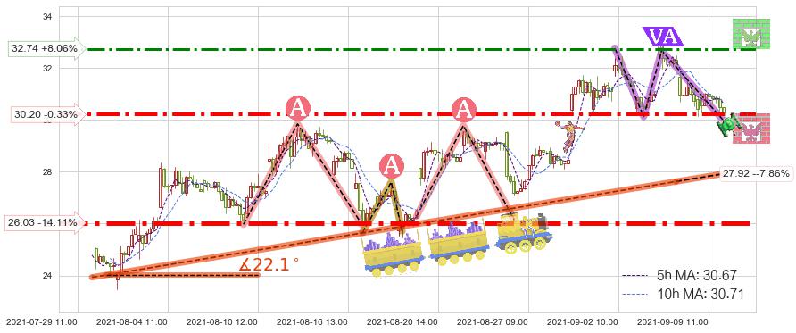 ➣ 【仅预测突破】最后价格:30.30与预测突破价格:29.86→【空间中等】后续最小【反转】第一目标价格→(09-14:14: 27.36 )