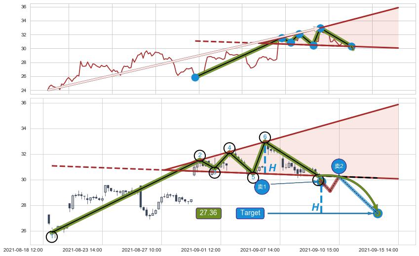 ➣ AI预测: 假定反转启动后, 第❸目标位置(09-21:15, 32.95)