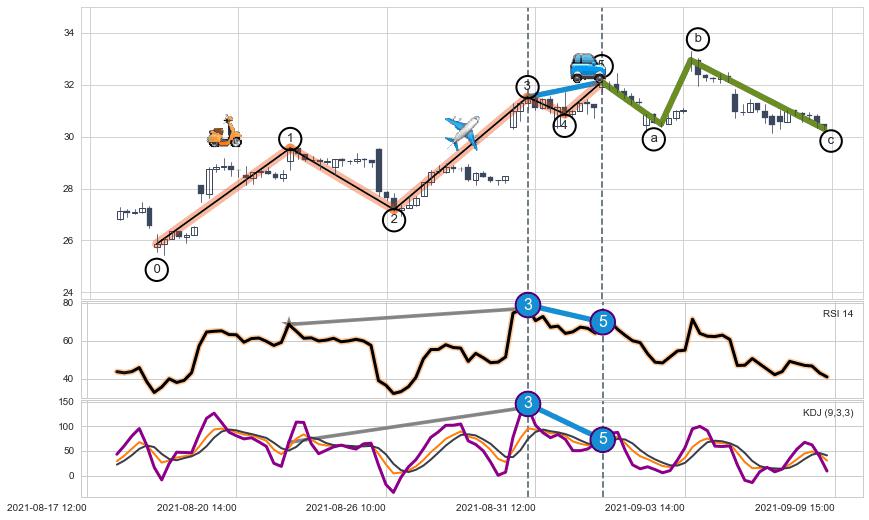 ➣ 波浪理论:猜想达到c点后小回调终止反转上涨 → 上涨 → 【拐点】临近 → 阶段均值回复结束后继续大周期趋势跟踪