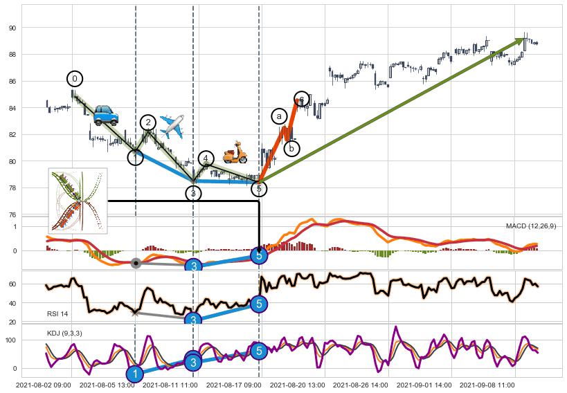 从2021-08-11 09:00至2021-09-09 14:00,共包含137个小时,阶段股价上涨12.60%,阶段股价变动位移路程比: 1 : 4,2021-08-19 09:00向⇪形成缺口,跳空上涨+3.49%