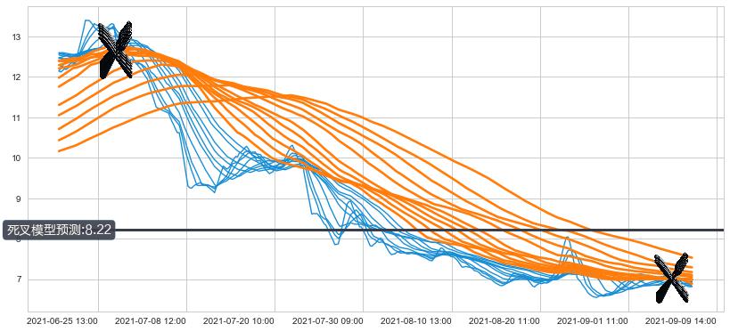📉 多条均线基于【死叉历史模型】预测最低波谷价格的平均值: 8.22