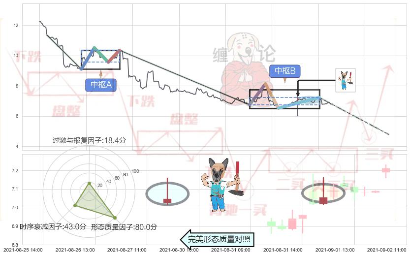 ➣ 缠论中枢点:下降缠中枢B破位后距离1买距离较远,随后猜想后续持续下跌(趋势跟踪)