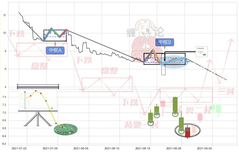 ➢ 缠论中枢点:猜想破位中枢B后持续下拉 → 下跌 → 破位中枢B支撑 → 持续趋势跟踪