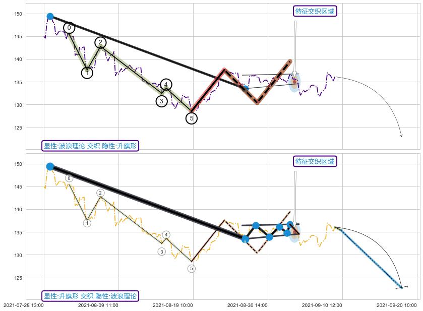 ➢ 波浪理论与升旗形信号事件周期长度级别相同,同周期信号事件