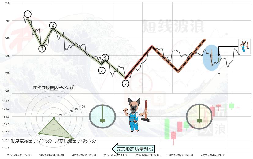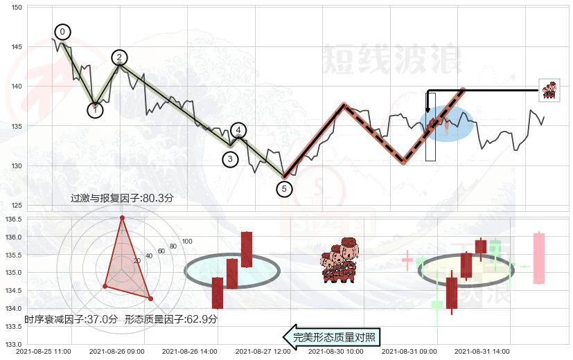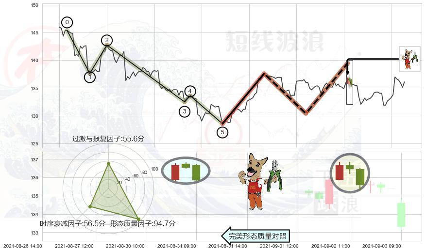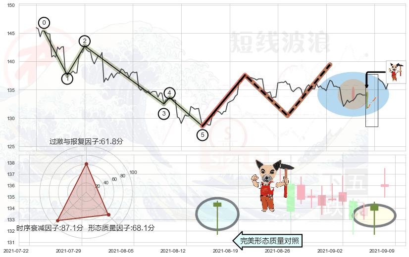 ➢ 🕰 价格走势在2021-08-27 00:00:00至2021-09-02 00:00:00期间形成低档五阳线,残存影响值:5.64