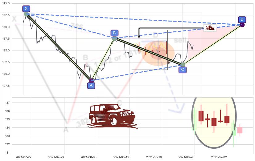 ➣ D点拟合预测价格140.43,距离最后交易收盘价格136.09相差 +3.19%