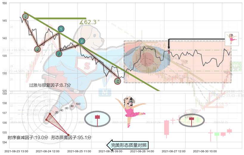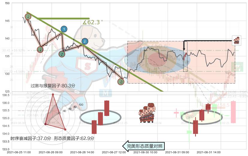 从2021-08-24 12:00至2021-08-31 09:00,共包含31个小时,阶段股价下跌-2.62%,阶段股价变动位移路程比: 1 : 3