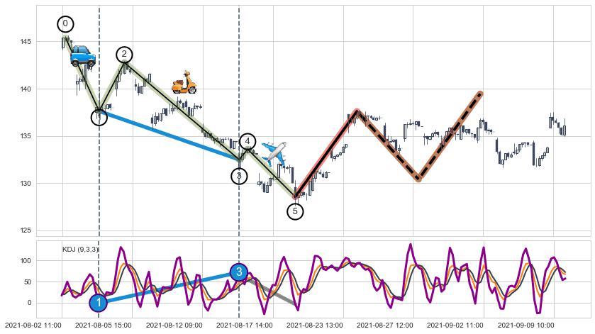 ➣ AI预测: 假定反转启动后, 第❶目标位置(09-22:13, 135.89)