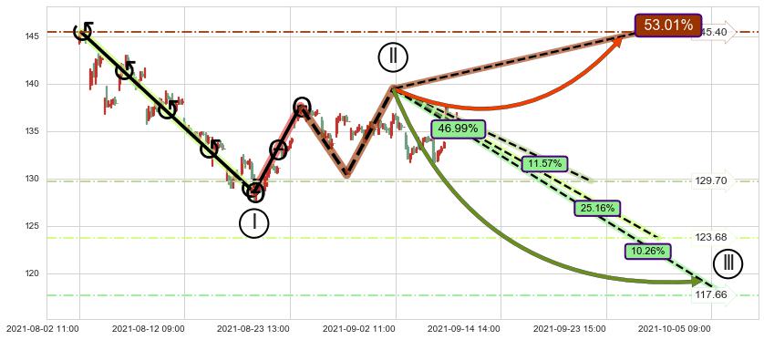 ➣ 循环浪继续向下【平均值】位置(09-29:12, 123.68),匹配聚类样本比例53.54%, 可能性概率25.16%