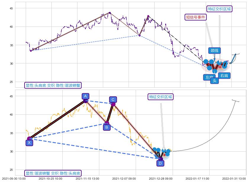 ➢ 头肩底属【短级别信号事件】谐波螃蟹属【长级别信号事件】长短周期组合信号事件, 短长事件长度比11.17%