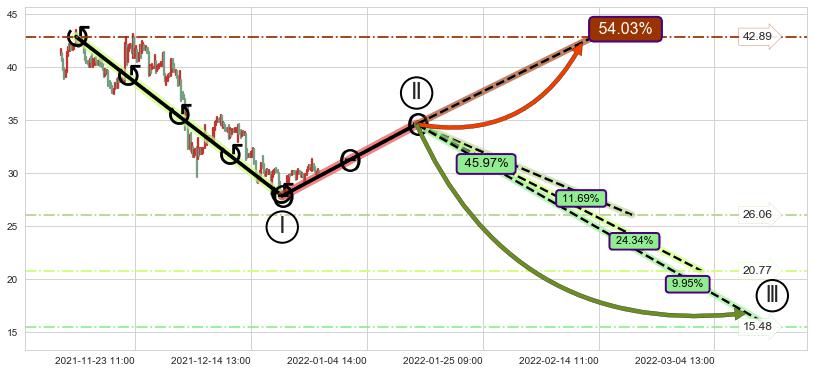2021-11-23: 第一阻力位42.87强力阻拦了上升趋势,成功阻止了价格的继续上涨。