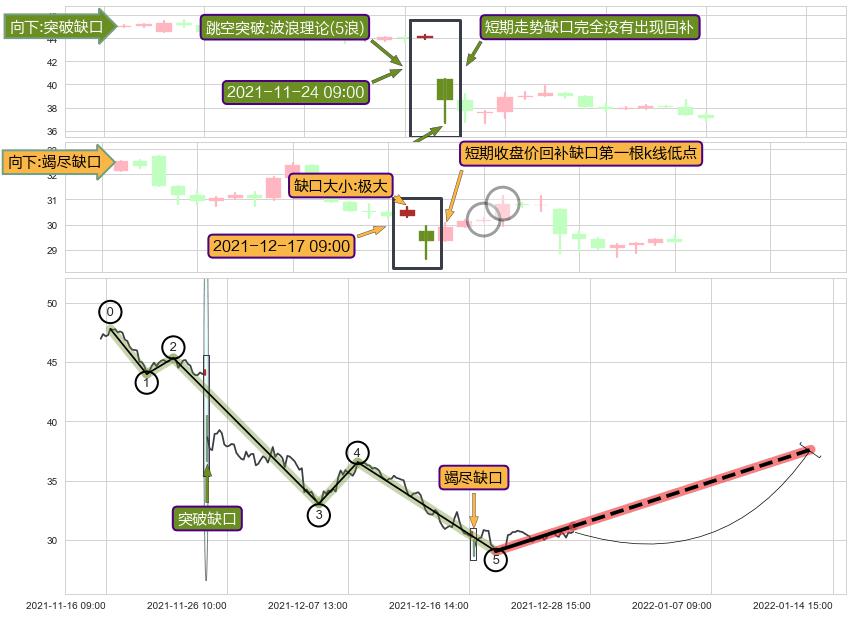 ➢ 2021-12-17 09:00形成:向下跳空【竭尽】缺口