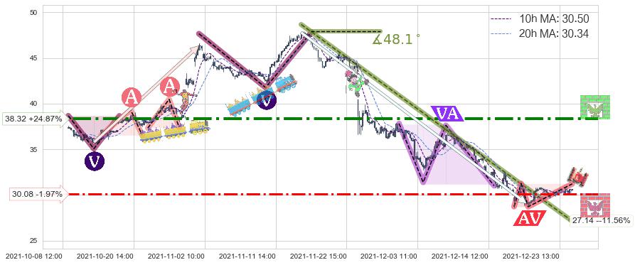 ♘ 阻力价格位38.32,可信任强度74.58%,距离最后交易2021-12-27 15:00形成的收盘价格30.69相差 +24.87%