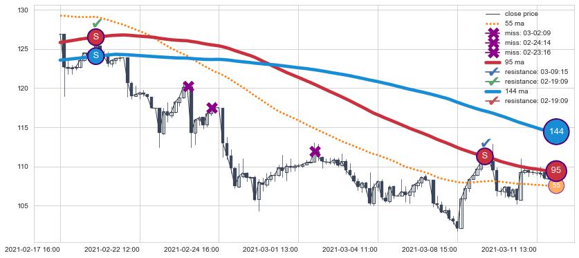 📝 多条均线形成死叉后走势最低价格达到: 90.21