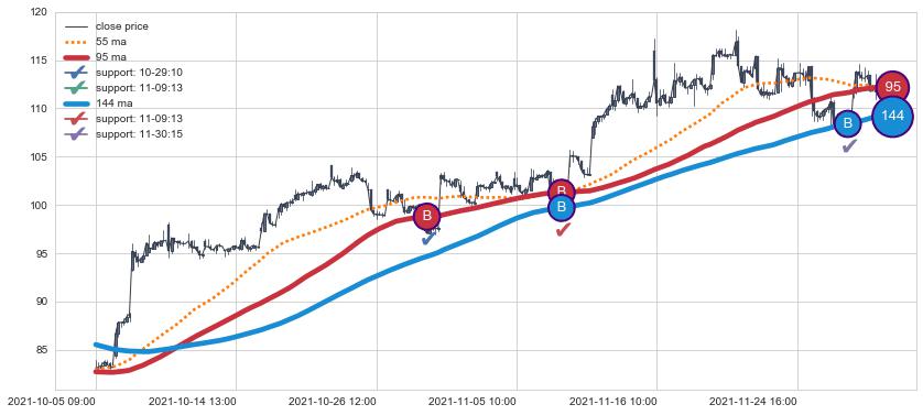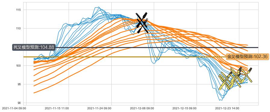 ➣ 95小时均线于(12-02 09:00: 112.14)形成【死叉】基于【死叉历史模型】预测死叉后最低波谷价格: 105.68, 死叉后最低价格90.21,已经下跌超出预测最低波谷价格, 预期反弹