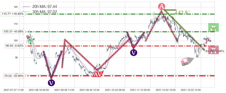 ♘ 阻力价格位105.31,可信任强度57.10%,距离最后交易2021-12-27 16:00形成的收盘价格97.44相差 +8.08%