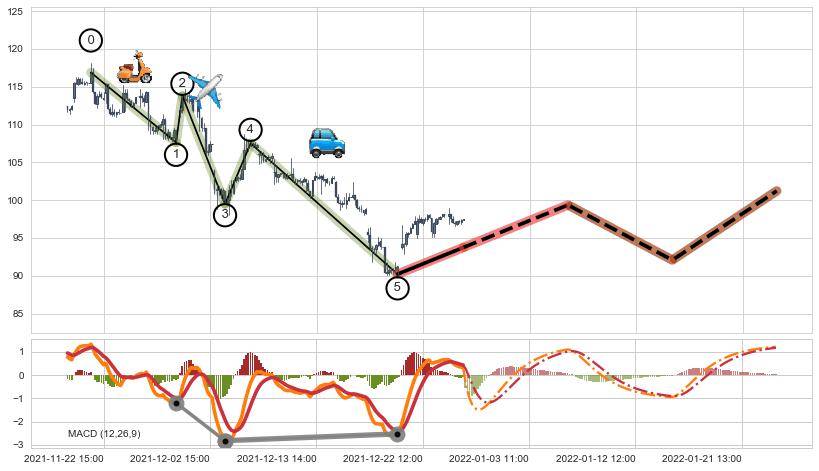 从2021-12-20 15:00至2021-12-27 16:00,共包含32个小时,阶段股价上涨7.85%,阶段股价变动位移路程比: 1 : 2