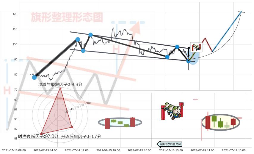 ➢ 🕰 价格走势在2021-07-19 10:00:00至2021-07-19 14:00:00期间形成上升三部曲(升势三鸦),残存影响值:7.00