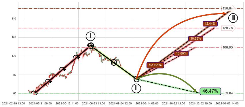 ➣ 大趋势循环浪继续向上概率53.53%