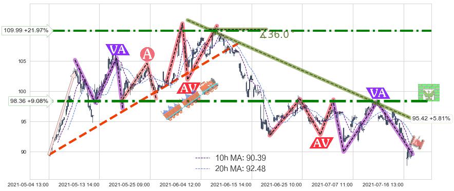 ♘ 阻力价格位98.36,可信任强度92.42%,距离最后交易2021-07-19 15:00形成的收盘价格90.18相差 +9.08%