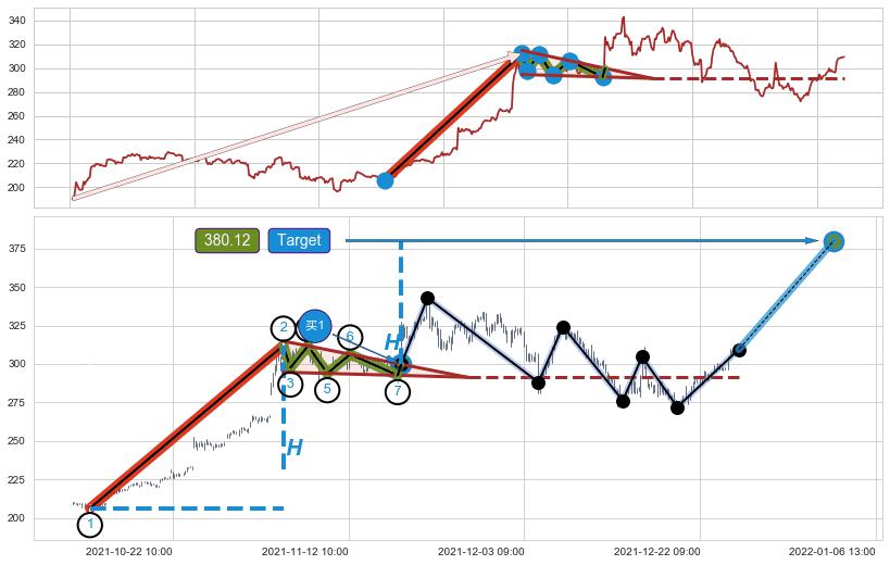 ➣ 【看多】信号叠加后首先朝【反向回撤】方向,之后再次起到影响朝【目标达成】方向