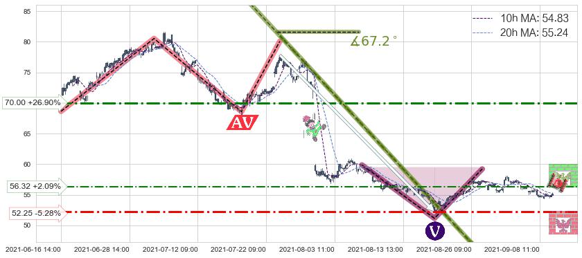 ♘ 阻力价格位56.32,可信任强度49.25%,距离最后交易2021-09-09 14:00形成的收盘价格55.16相差 +2.09%