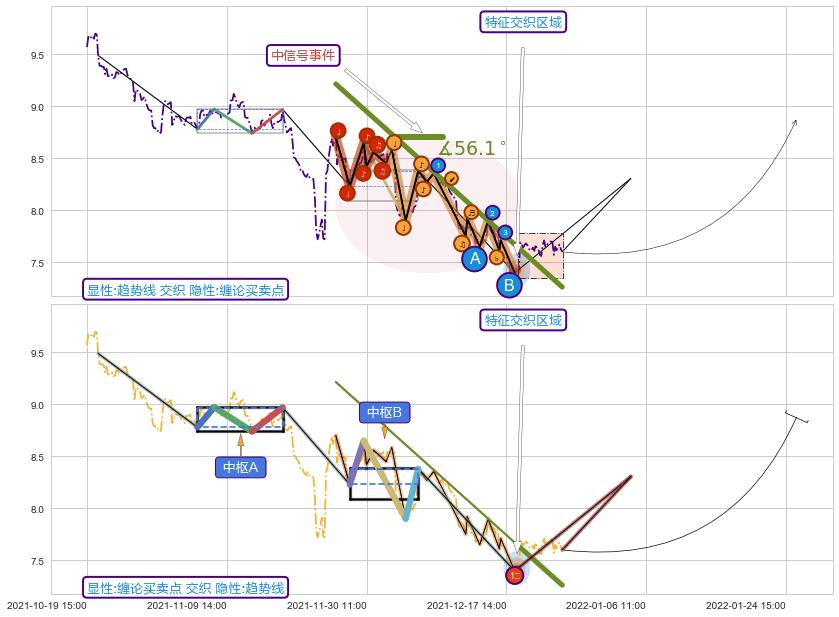 ➢ 缠论买卖点:下降缠中枢AB形成后猜想拐点1买已到达,猜想后续持续拉升(均值回复)