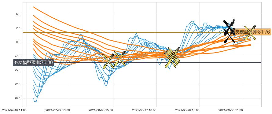 📉 多条均线基于【死叉历史模型】预测最低波谷价格的平均值: 76.30