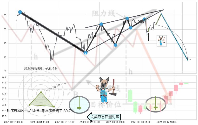 ➣ 【已确认突破】最后价格:81.62与最小【整理】第一目标价格→(09-28:13: 68.90 )相较: 下跌空间【较大】
