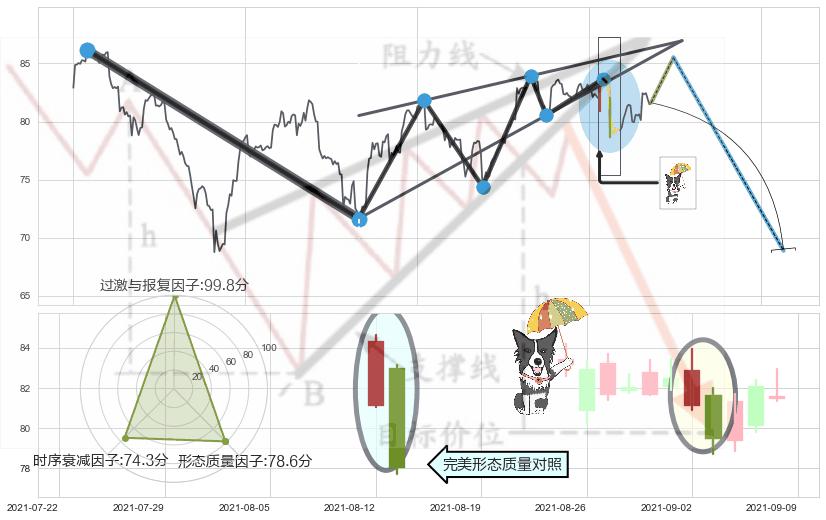 ♘ 阻力价格位83.38,可信任强度95.24%,距离最后交易2021-09-09 14:00形成的收盘价格81.62相差 +2.16%