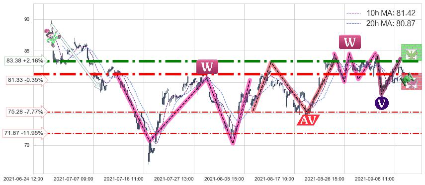 ♘ 支撑价格位81.33,可信任强度85.35%,距离最后交易2021-09-09 14:00形成的收盘价格81.62相差 -0.35%