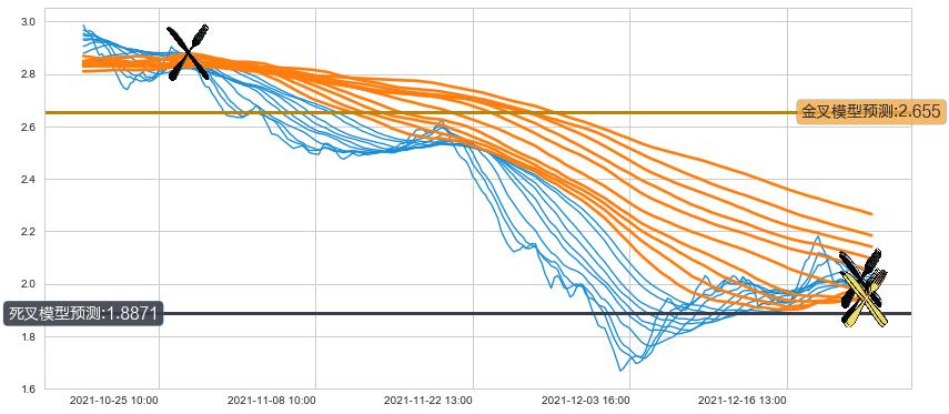 ➣ 34小时均线于(12-23 15:00: 2.015)形成【死叉】基于【死叉历史模型】预测死叉后最低波谷价格: 1.8223, 死叉后最低价格1.9000,尚未达到预测最低波谷价格, 预期继续下跌