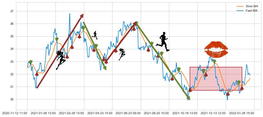 📝 多条均线形成死叉后走势最低价格达到: 21.72